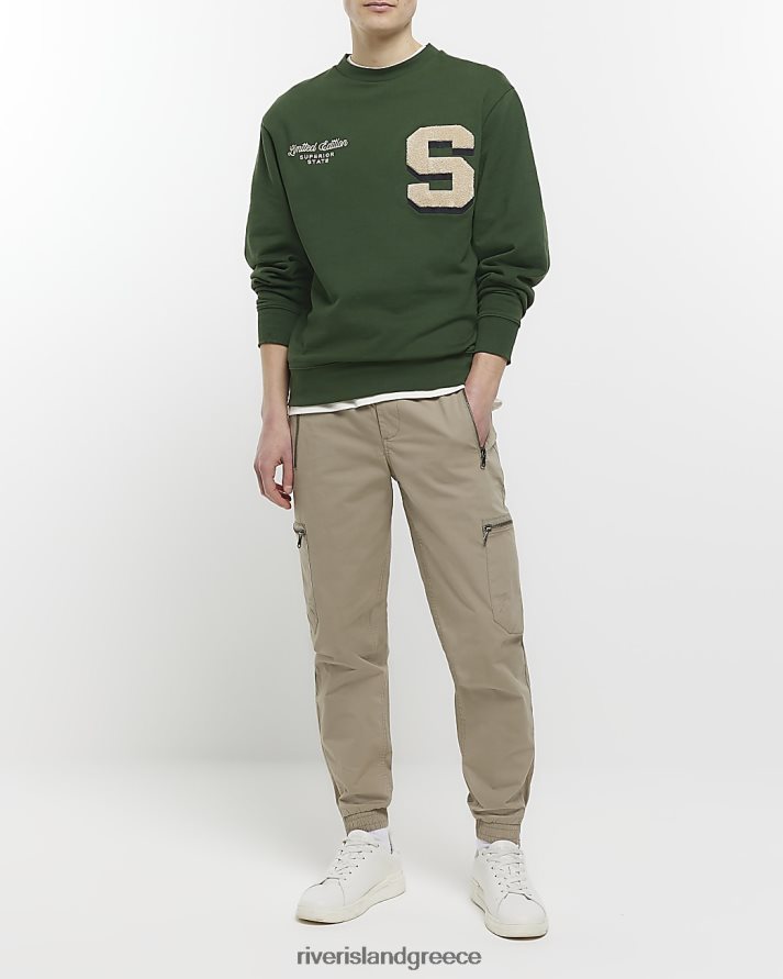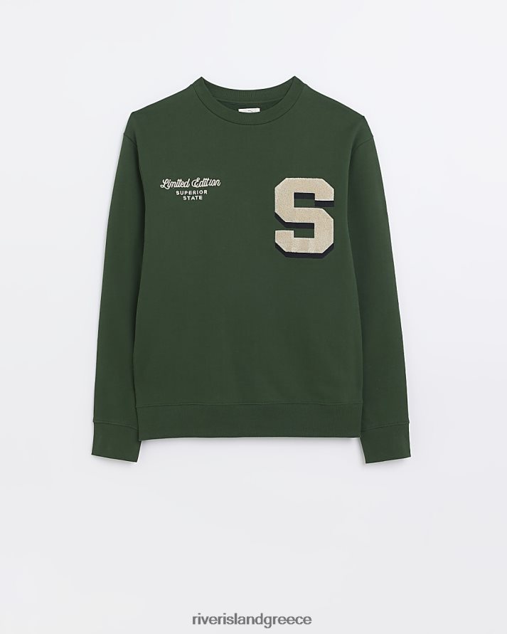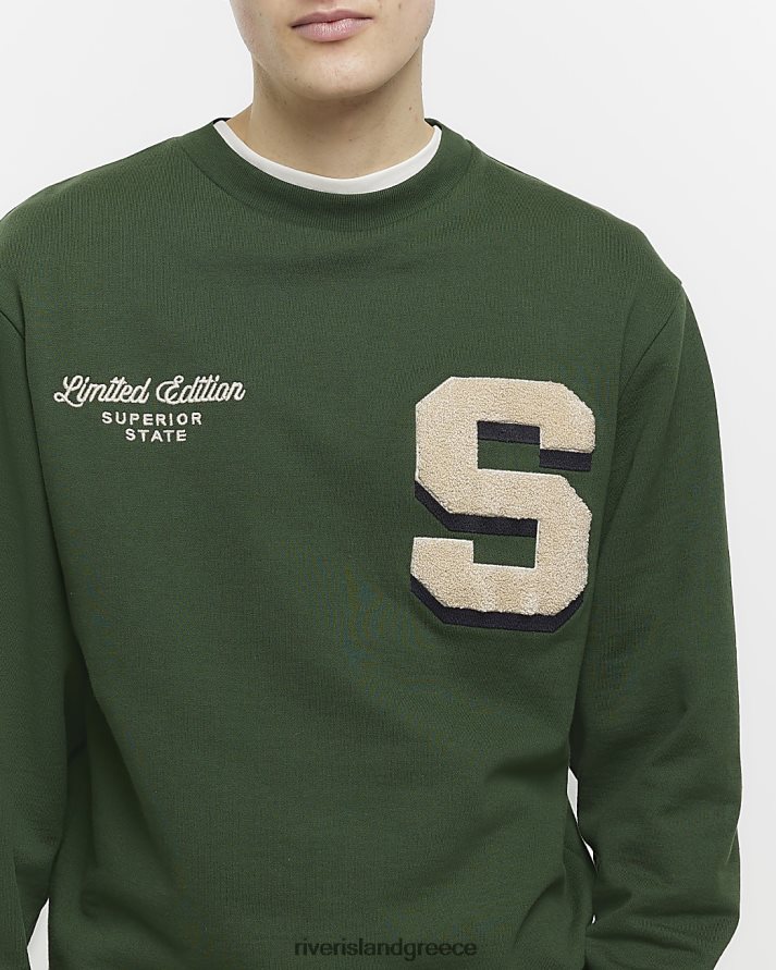 River Island ενδύματα πράσινος άνδρες φούτερ πανεπιστημίου με κανονική εφαρμογή B6N8X5833