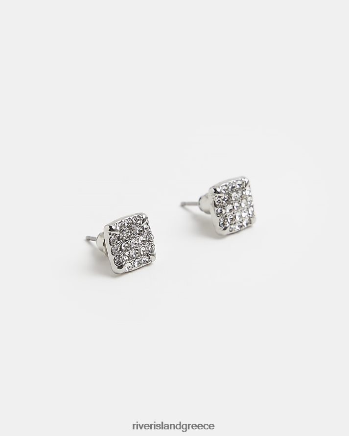 River Island αξεσουάρ ασήμι άνδρες έγχρωμα καρφωτά σκουλαρίκια τετράγωνα κρυστάλλινα B6N8X5931