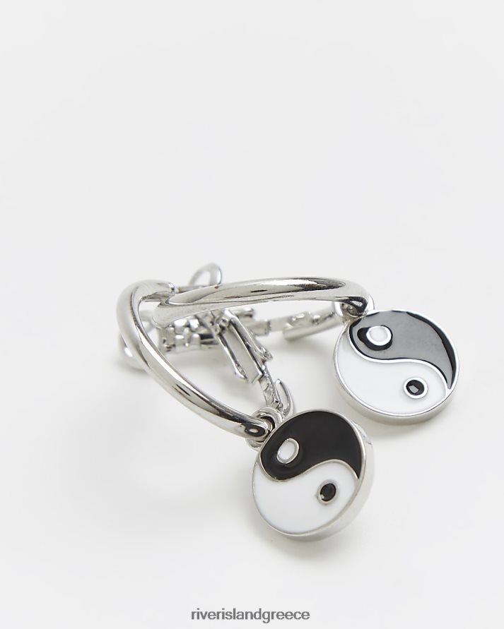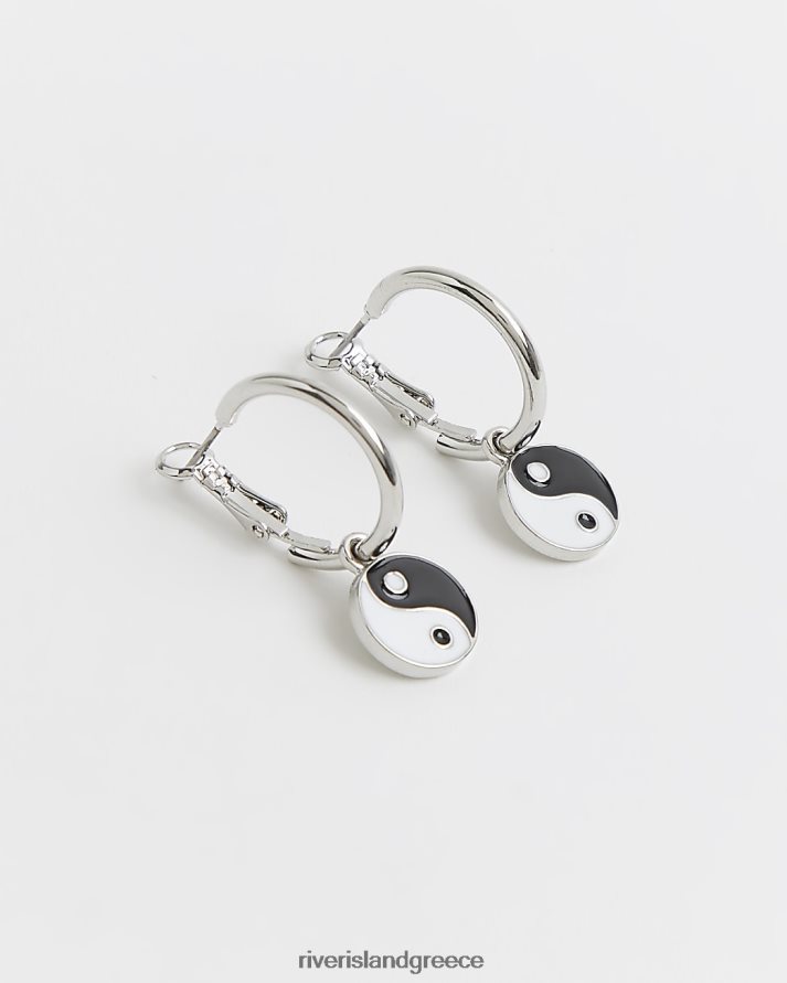 River Island αξεσουάρ ασήμι άνδρες έγχρωμα σκουλαρίκια κρίκου yin και yang B6N8X5958