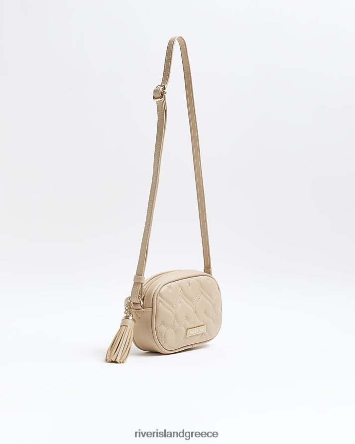 River Island αξεσουάρ μπεζ κορίτσια g καρδιά καπιτονέ χιαστί τσάντα B6N8X6249