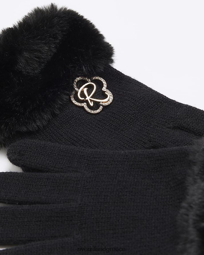 River Island αξεσουάρ μαύρος κορίτσια g γάντια από συνθετική γούνα B6N8X6067
