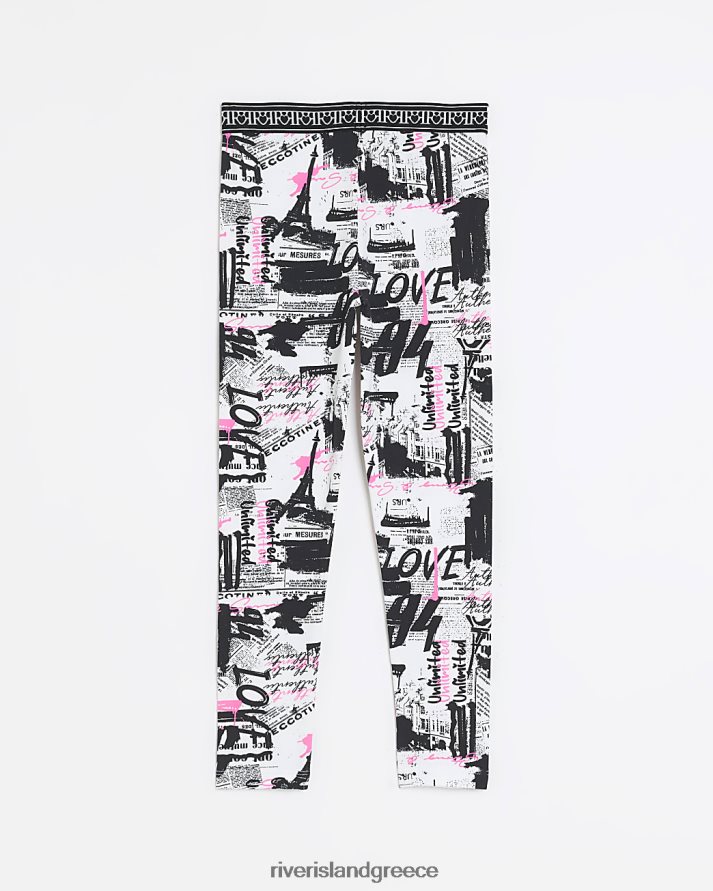 River Island ενδύματα μαύρος κορίτσια g ri κολάν με στάμπα εφημερίδας B6N8X6201