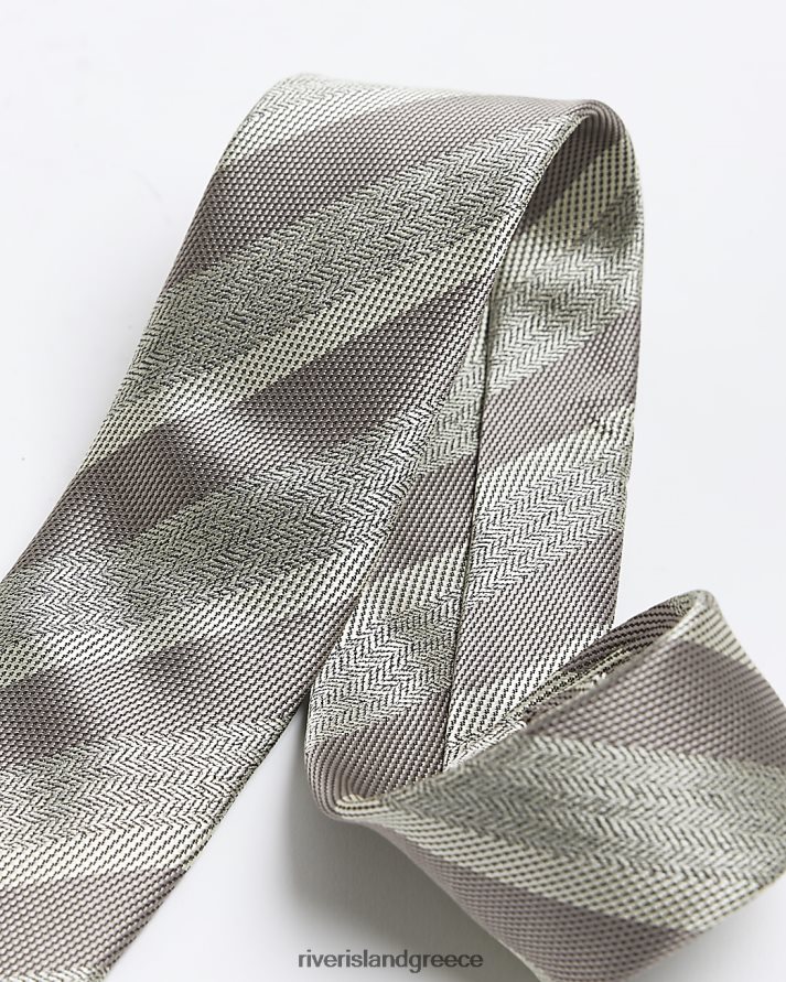 River Island αξεσουάρ γκρί άνδρες ριγέ γραβάτα B6N8X5715