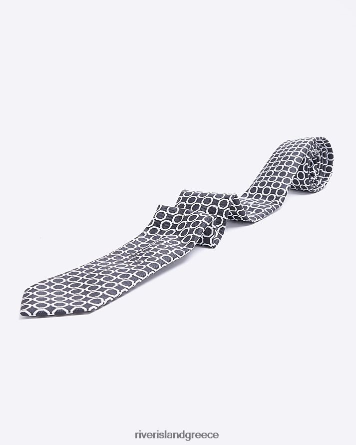 River Island αξεσουάρ μαύρος άνδρες γεωμετρική στάμπα γραβάτα B6N8X5853