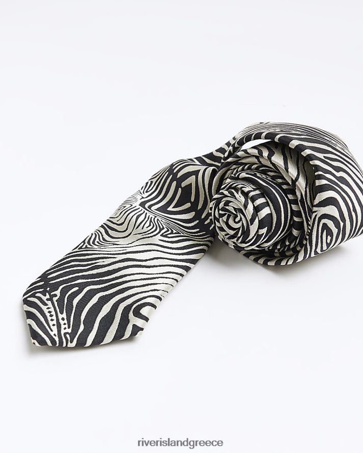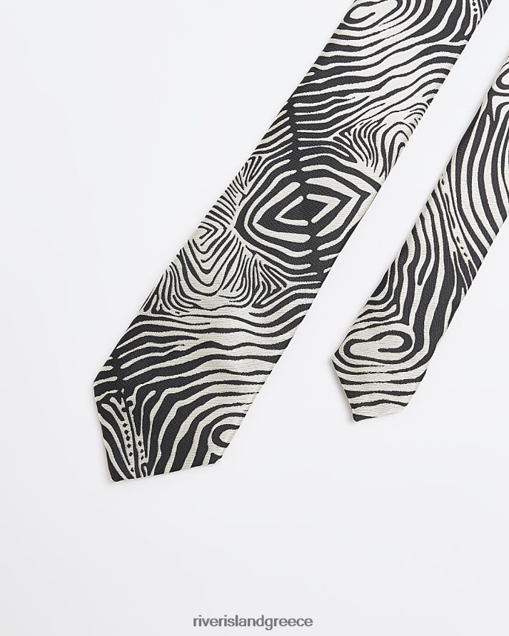 River Island αξεσουάρ μαύρος άνδρες γραβάτα με στάμπα ζέβρα B6N8X3105