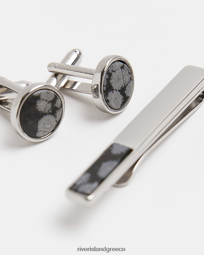 River Island αξεσουάρ μαύρος άνδρες Σετ κλιπ γραβάτας με λεπτομέρεια B6N8X2968