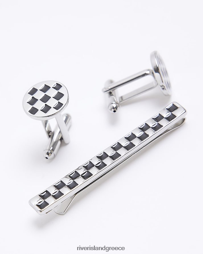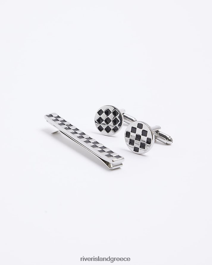 River Island αξεσουάρ μαύρος άνδρες Σετ κλιπ γραβάτας σκακιέρας B6N8X2967