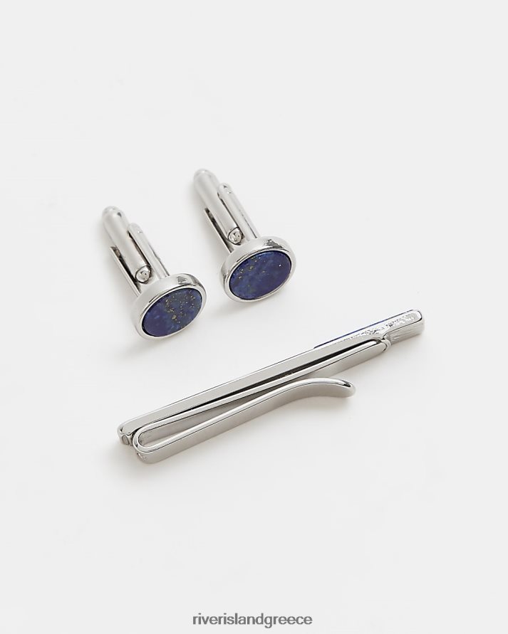 River Island αξεσουάρ μπλε άνδρες Σετ κλιπ γραβάτας με λεπτομέρεια B6N8X2969