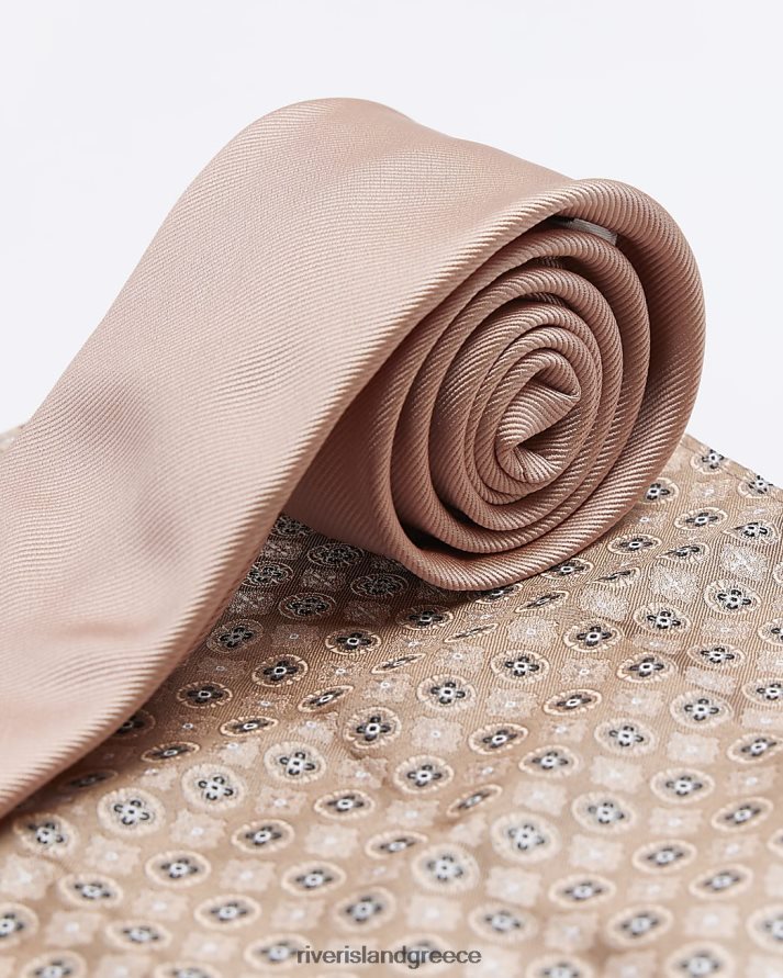 River Island αξεσουάρ ροζ άνδρες Σετ twill γεωμετρική γραβάτα και τσαντάκι B6N8X2714