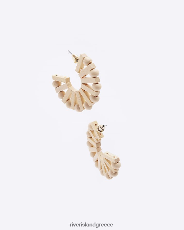 River Island αξεσουάρ άσπρο γυναίκες ξύλινα σκουλαρίκια κρίκοι B6N8X4848