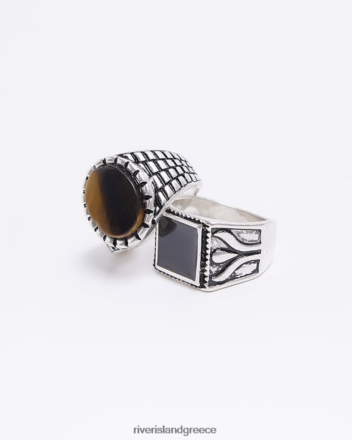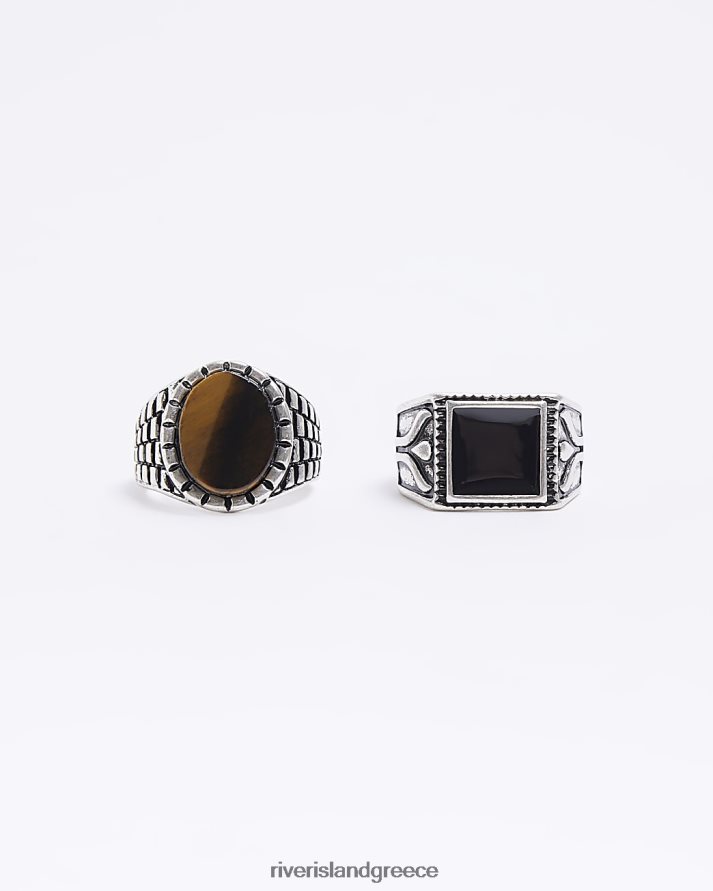 River Island αξεσουάρ ασήμι άνδρες έγχρωμη πέτρα πολυσυσκευασία με 2 δαχτυλίδια B6N8X5861