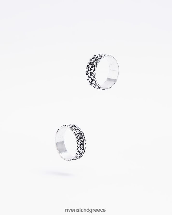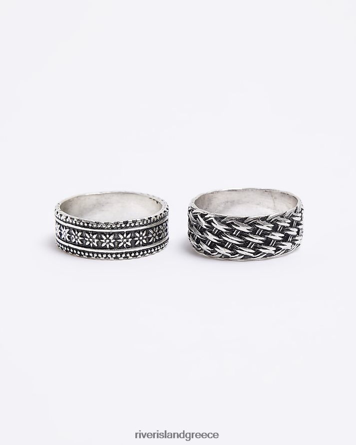 River Island αξεσουάρ ασήμι άνδρες έγχρωμη πολυσυσκευασία με 2 δαχτυλίδια ύφανσης B6N8X5753