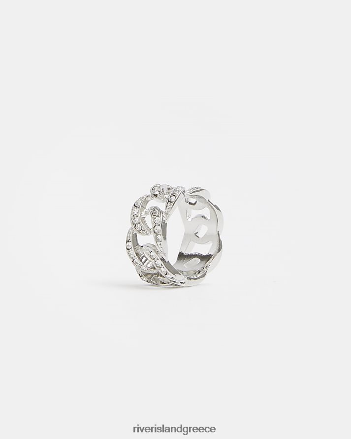 River Island αξεσουάρ ασήμι άνδρες έγχρωμο δαχτυλίδι αλυσίδας B6N8X5952