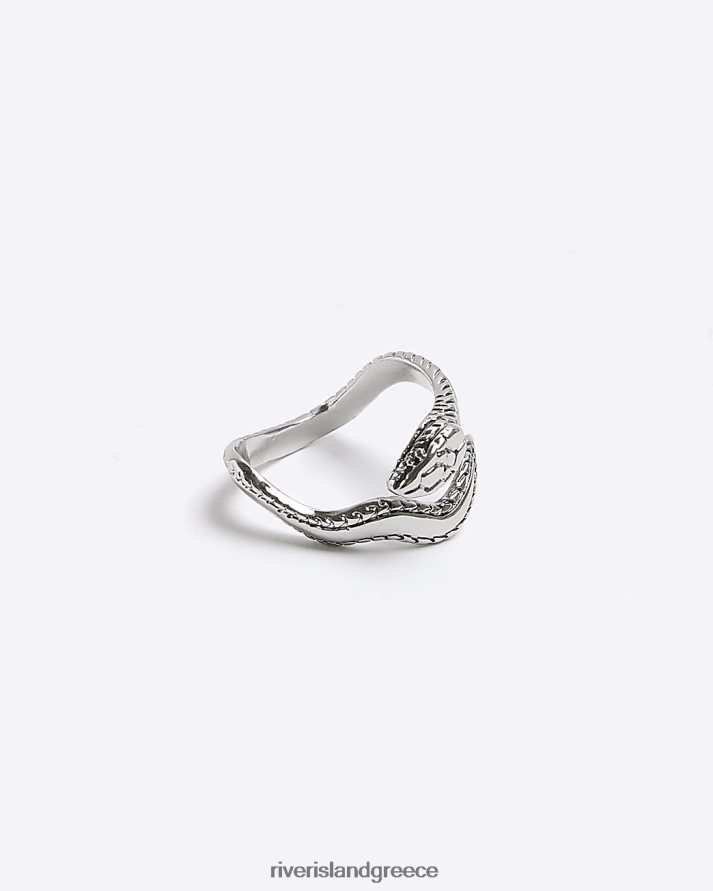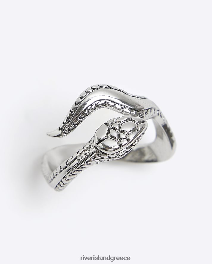 River Island αξεσουάρ ασήμι άνδρες έγχρωμο δαχτυλίδι περιτυλίγματος φιδιού B6N8X5647
