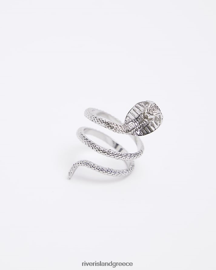 River Island αξεσουάρ ασήμι άνδρες έγχρωμο δαχτυλίδι περιτυλίγματος φιδιού B6N8X5857