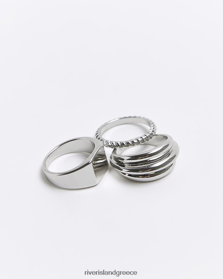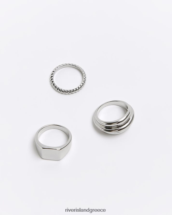 River Island αξεσουάρ ασήμι άνδρες έγχρωμο δαχτυλίδι πολυσυσκευασία B6N8X5532