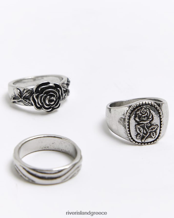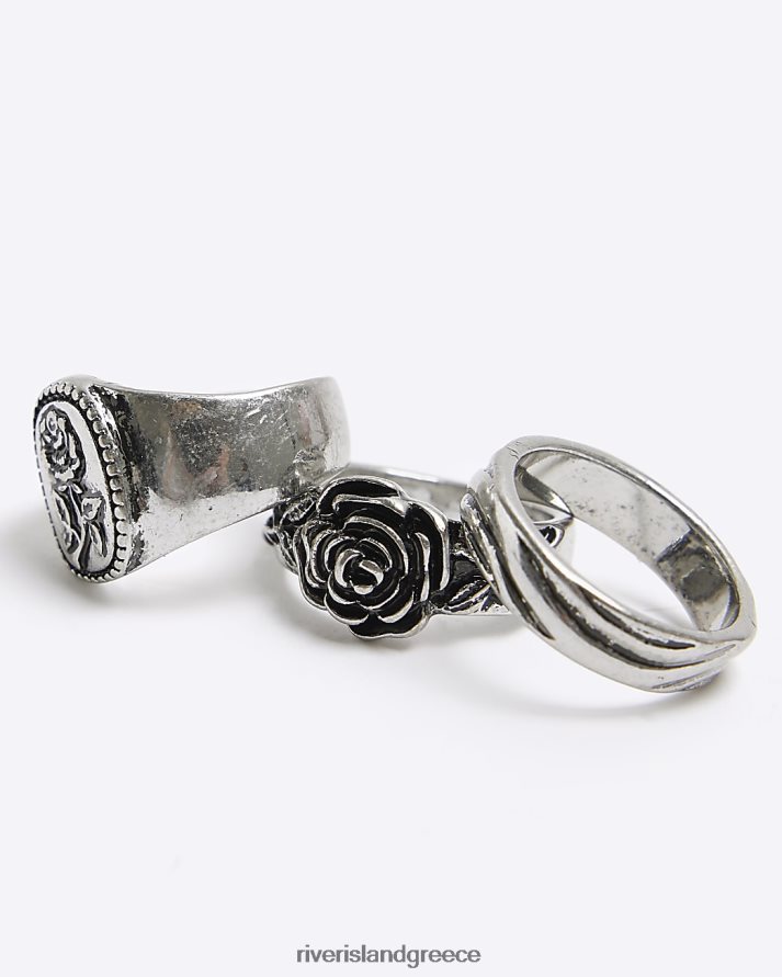 River Island αξεσουάρ ασήμι άνδρες πολυσυσκευασία δαχτυλίδι ροζ χρώματος B6N8X5533