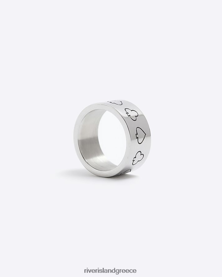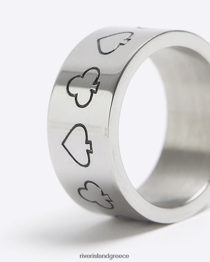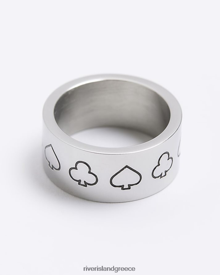 River Island αξεσουάρ ασήμι άνδρες χρωματιστό δαχτυλίδι μπαστούνι άσσου από ατσάλι B6N8X5414