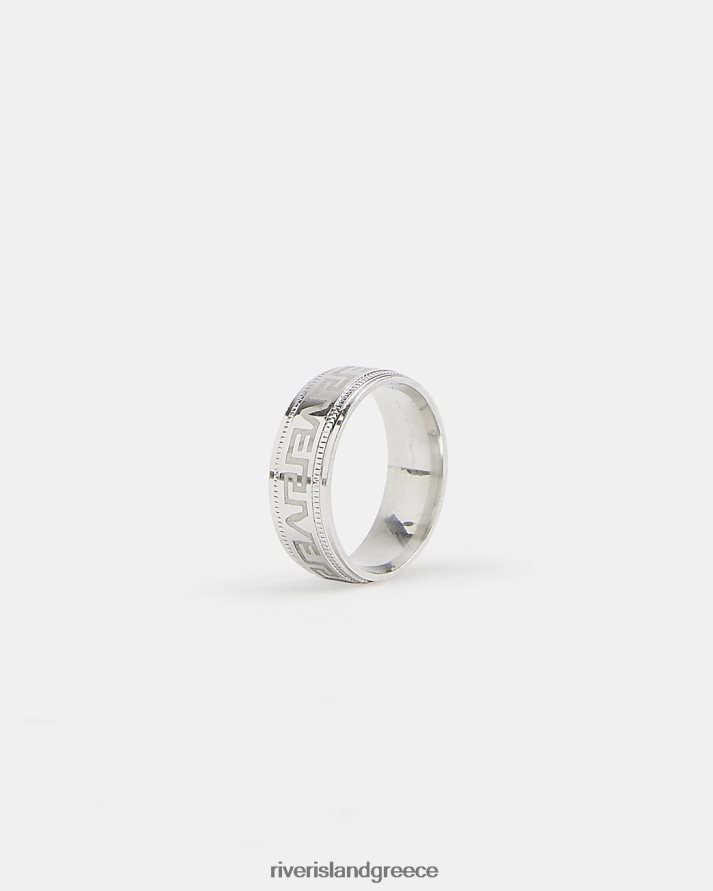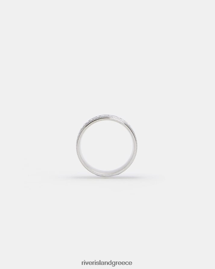 River Island αξεσουάρ ασήμι άνδρες χρώμα ελληνικό χαραγμένο δαχτυλίδι B6N8X5912