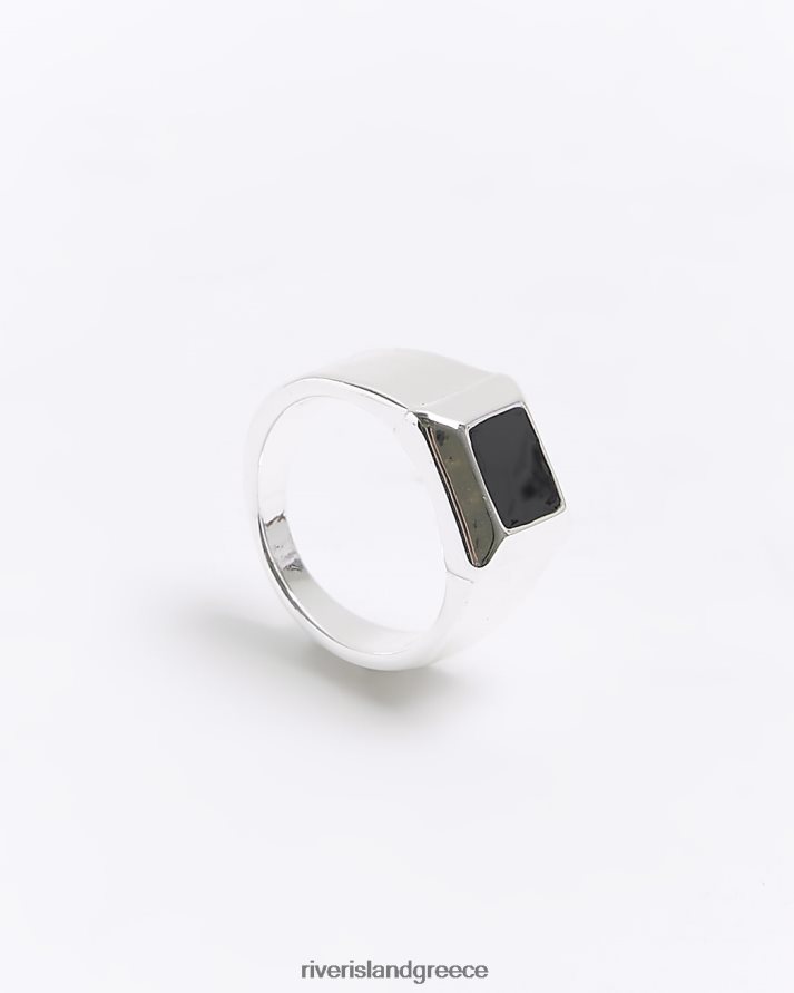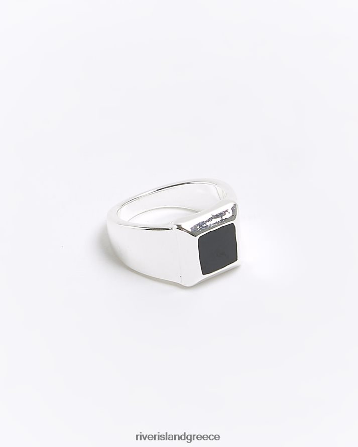River Island αξεσουάρ ασήμι άνδρες χρώμα τετράγωνο δαχτυλίδι σφραγίδα B6N8X5539