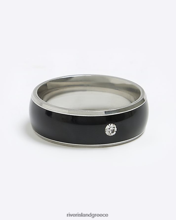 River Island αξεσουάρ μαύρος άνδρες πέτρινο δαχτυλίδι με λεπτομέρεια B6N8X5751
