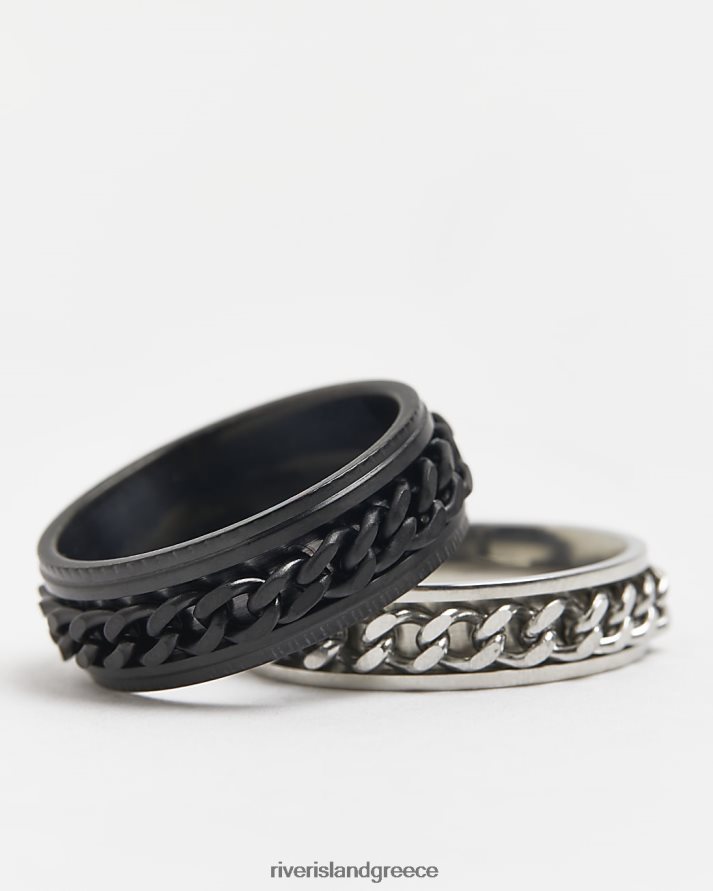River Island αξεσουάρ μαύρο ασήμι άνδρες ανοξείδωτα δαχτυλίδια 2 συσκευασίες B6N8X5960