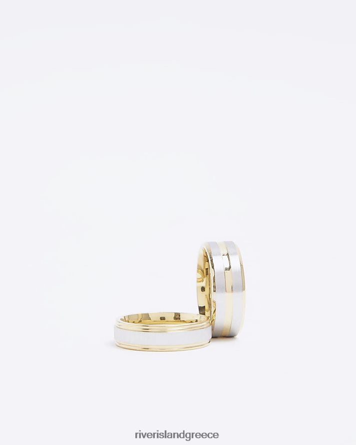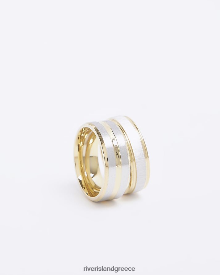 River Island αξεσουάρ χρυσός άνδρες έγχρωμη πολυσυσκευασία με 2 δαχτυλίδια B6N8X5876