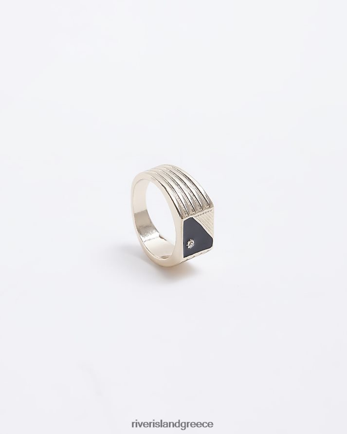 River Island αξεσουάρ χρυσός άνδρες χρώματος σμάλτο τετράγωνο δαχτυλίδι B6N8X5877