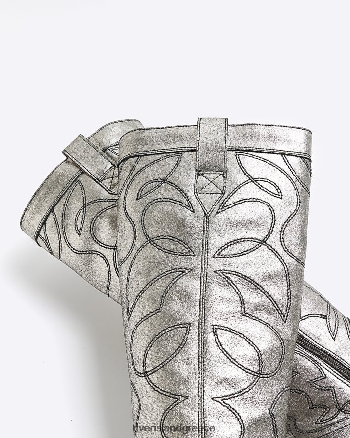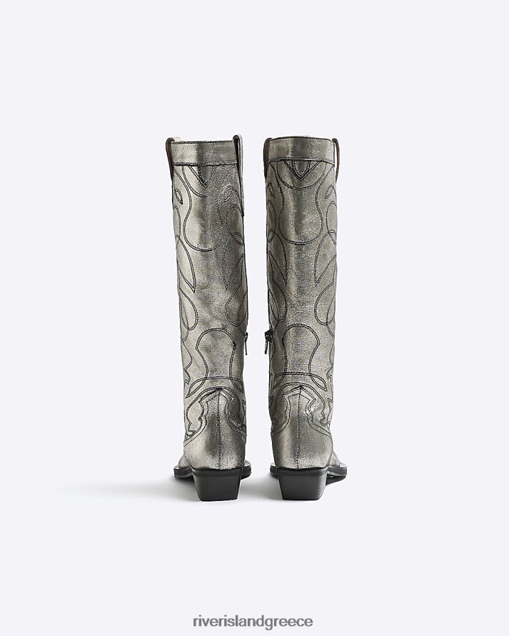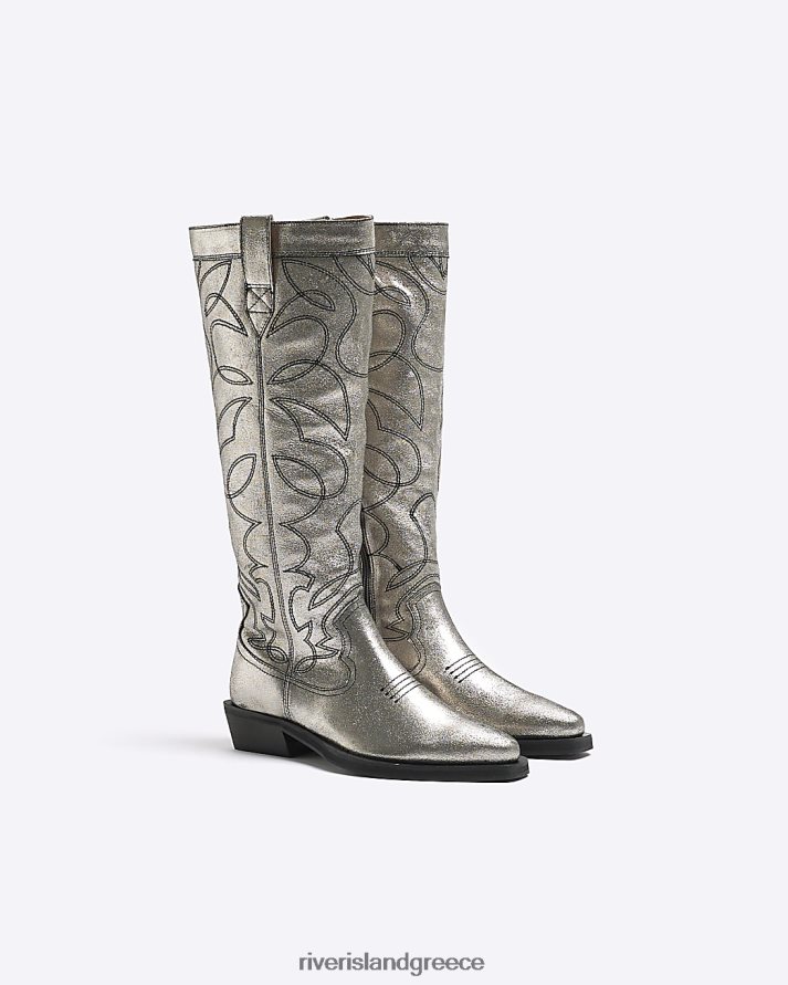 River Island είδη υπόδησης ασήμι γυναίκες δερμάτινες μπότες γουέστερν B6N8X924