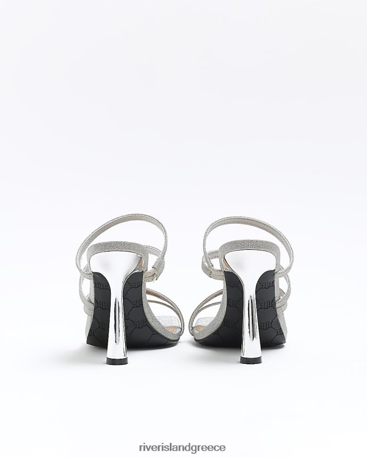 River Island είδη υπόδησης ασήμι γυναίκες πέδιλα mule με γυαλιστερό τακούνι B6N8X758