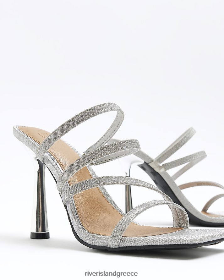 River Island είδη υπόδησης ασήμι γυναίκες φαρδιά πέδιλα με γυαλιστερό τακούνι mule B6N8X4201