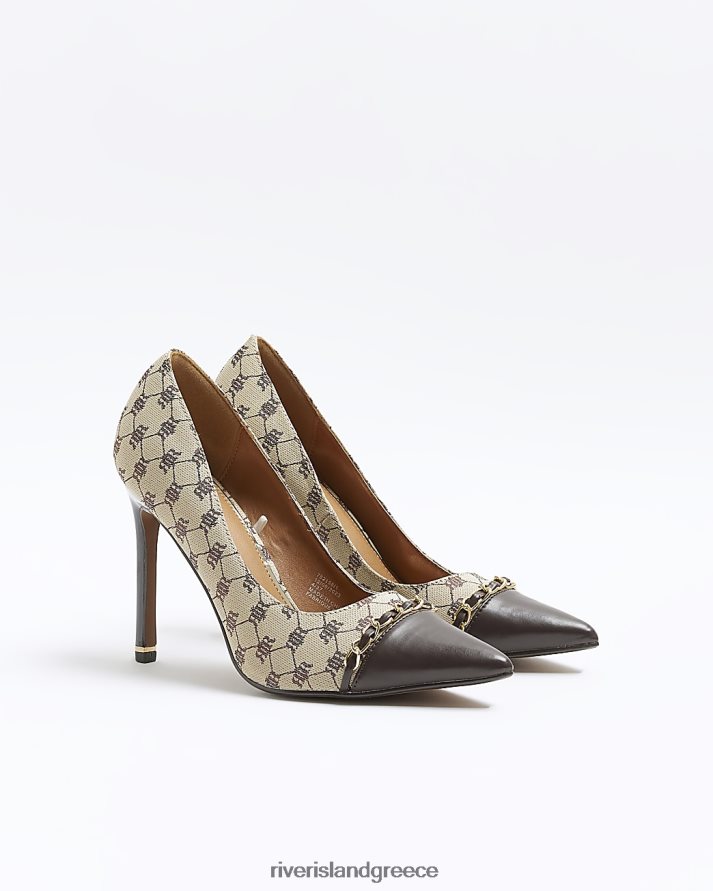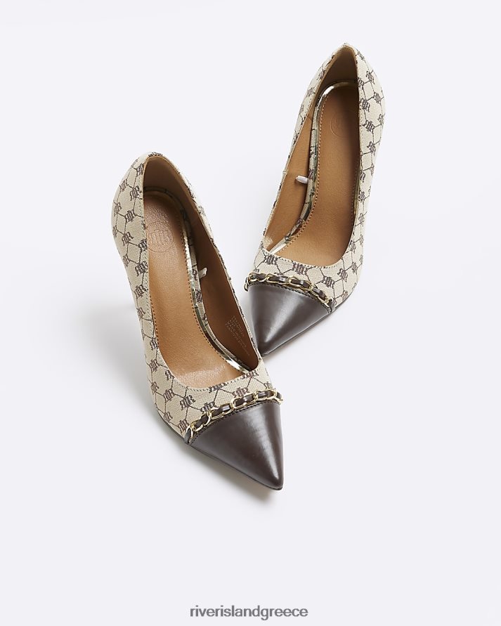River Island είδη υπόδησης καφέ γυναίκες ζακάρ μονογράμματα με τακούνι δικαστήριο B6N8X1040
