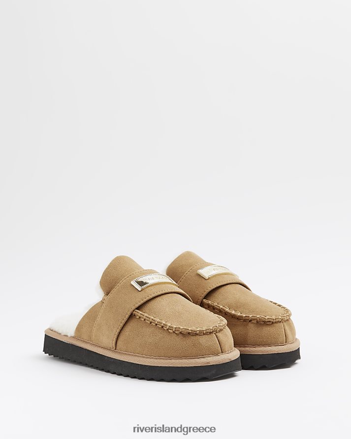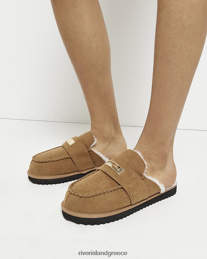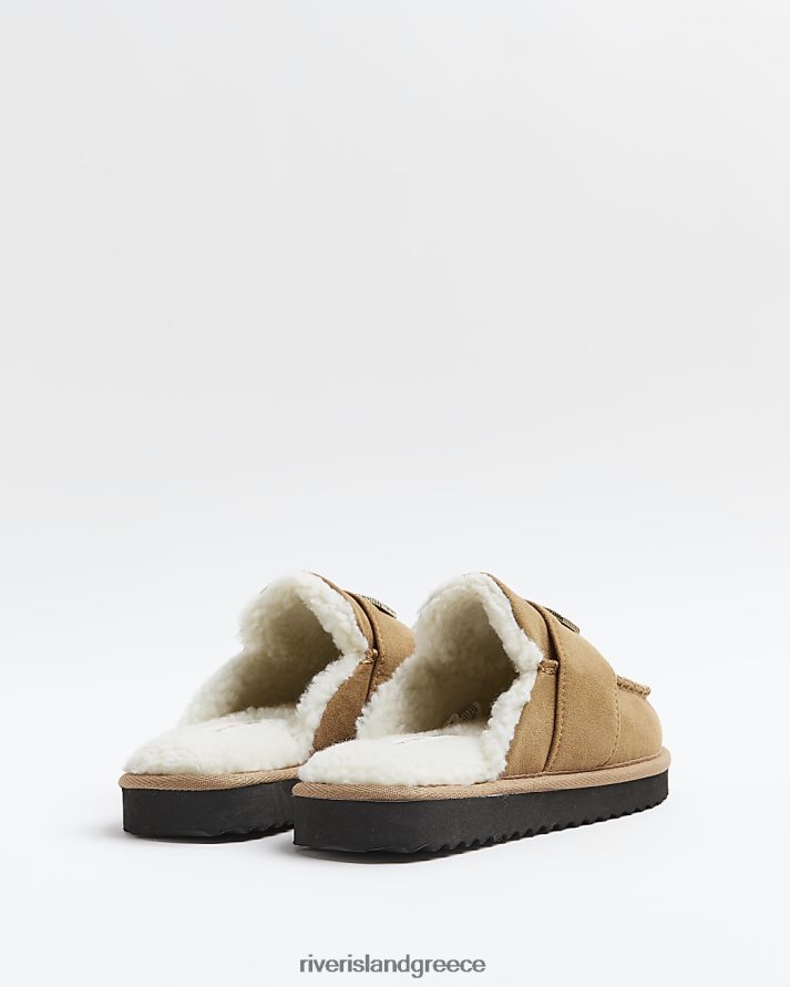 River Island είδη υπόδησης καφέ γυναίκες παντόφλες mule με επένδυση borg B6N8X4722