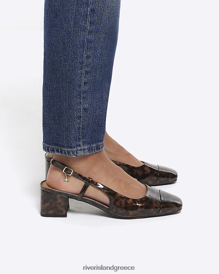 River Island είδη υπόδησης καφέ γυναίκες στάμπα μπλοκ με τακούνι δικαστήριο παπούτσια B6N8X370
