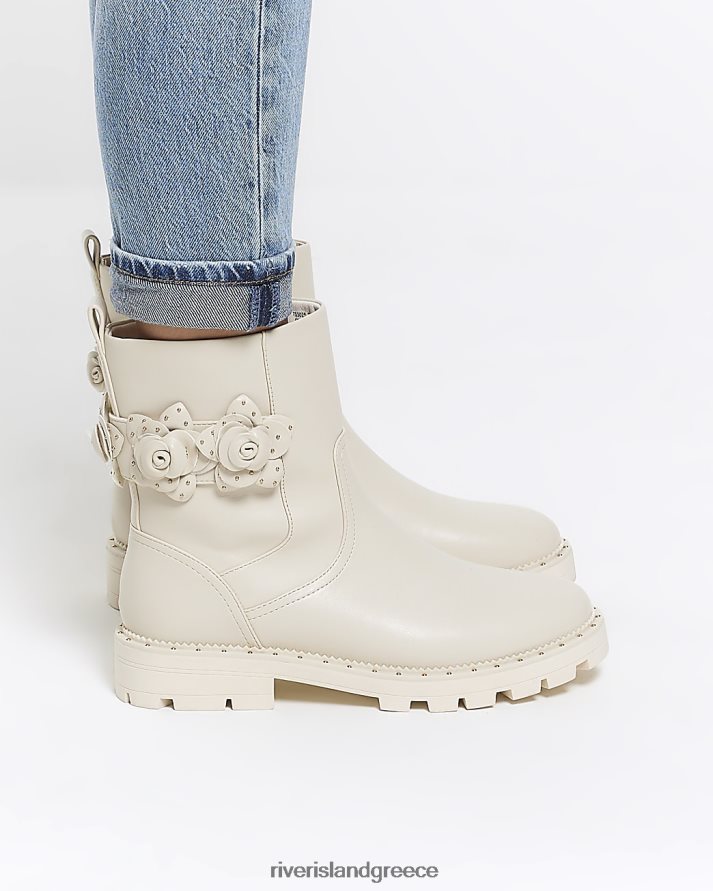 River Island είδη υπόδησης κρέμα γυναίκες λεπτομέρεια λουλουδιών μπότες ποδηλασίας B6N8X1202