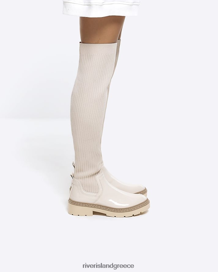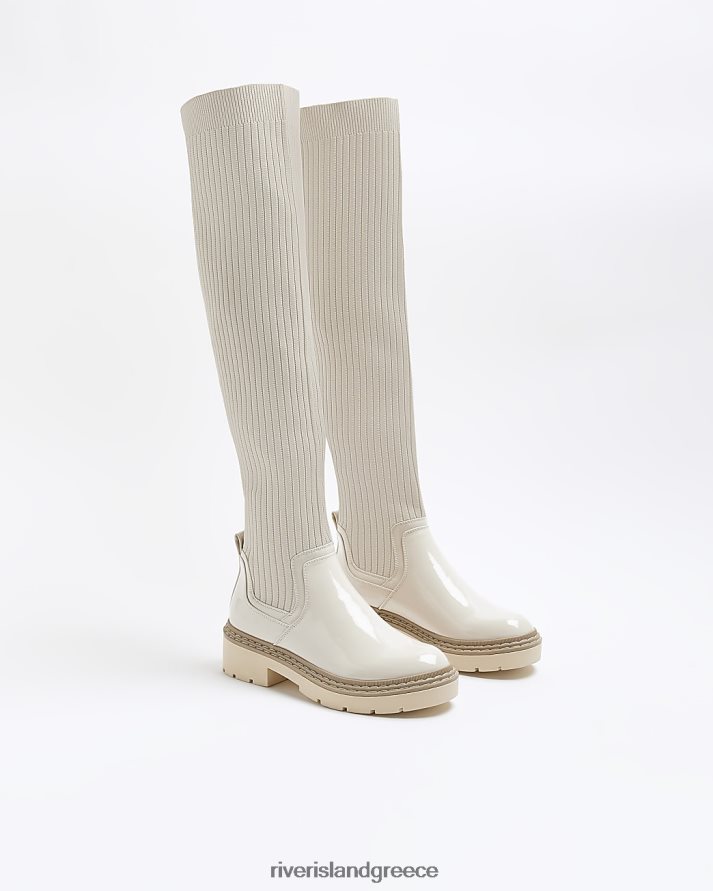 River Island είδη υπόδησης κρέμα γυναίκες πλεκτές μπότες με ψηλό πόδι B6N8X1072