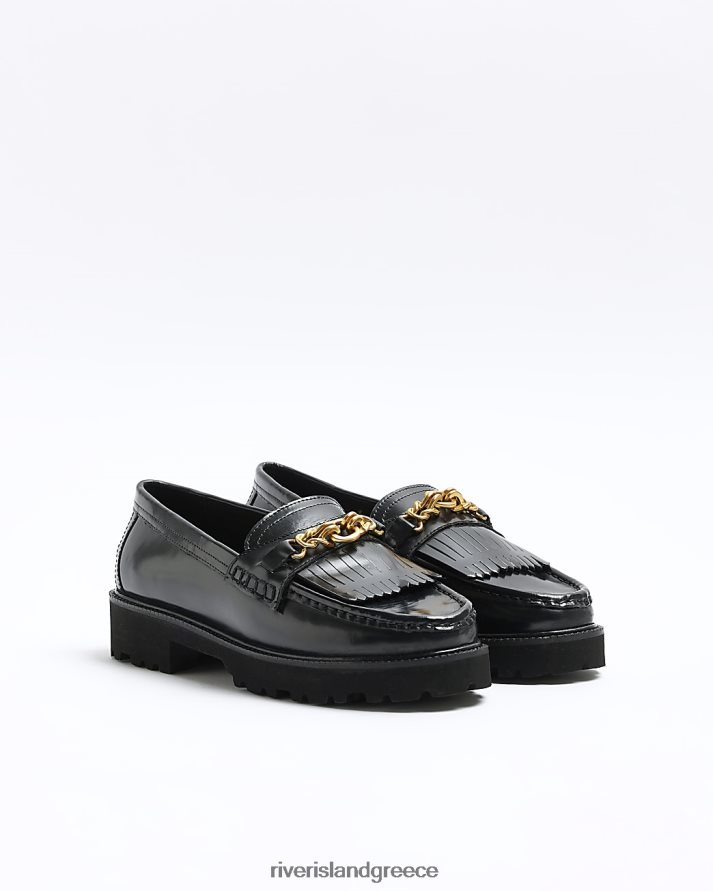 River Island είδη υπόδησης μαύρος γυναίκες δερμάτινα loafers με αλυσίδα B6N8X518