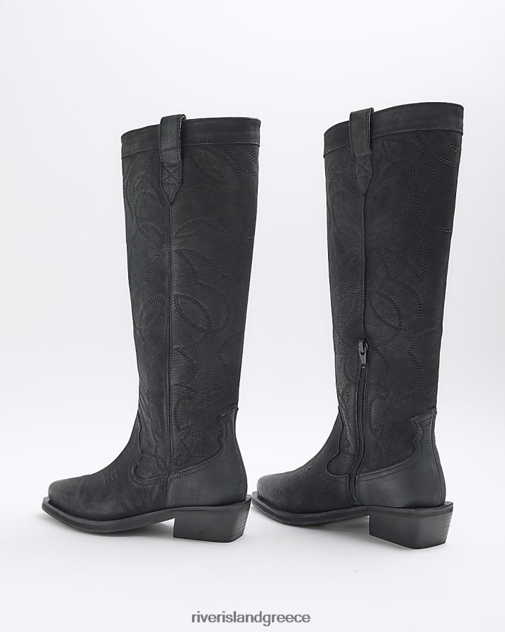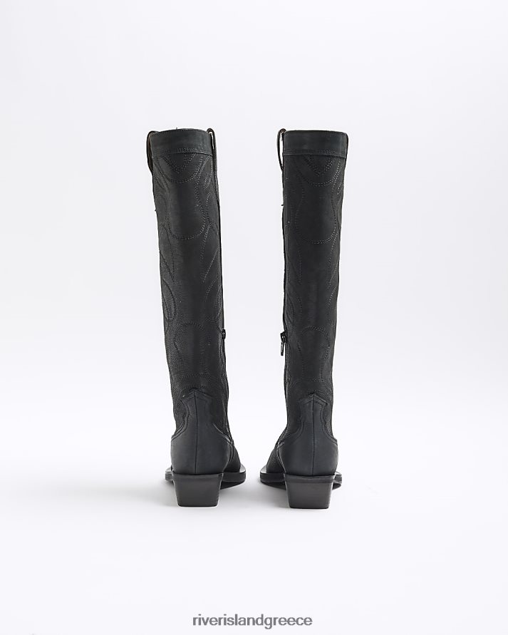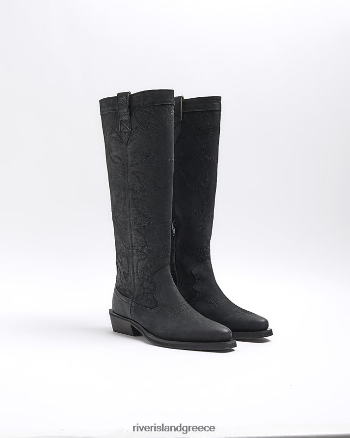 River Island είδη υπόδησης μαύρος γυναίκες δερμάτινες δυτικές μπότες με ψηλό πόδι B6N8X923
