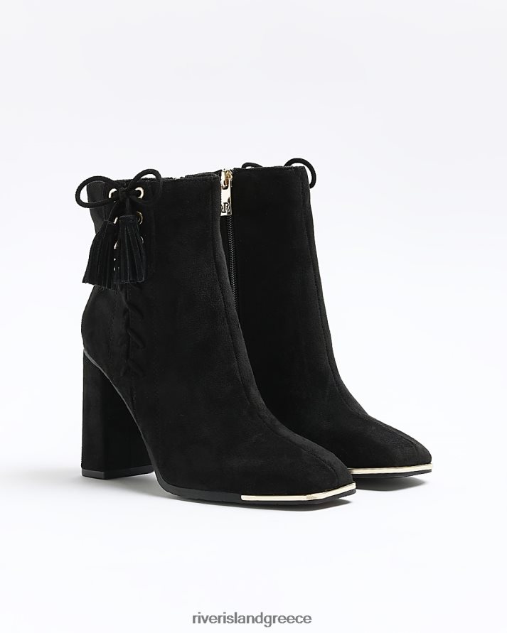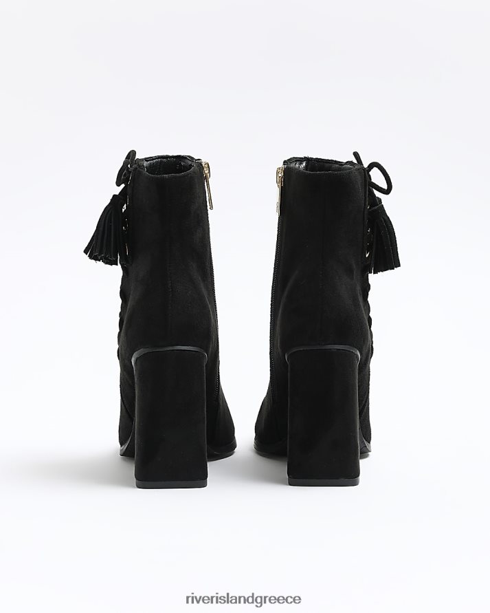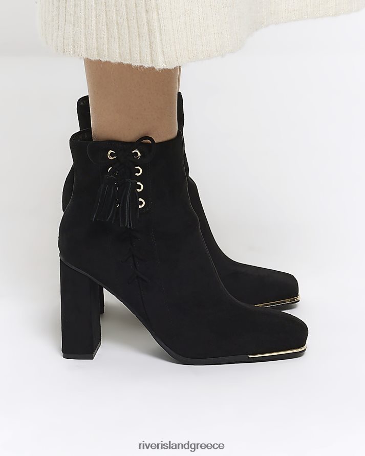 River Island είδη υπόδησης μαύρος γυναίκες Μποτάκια σουέντ με κορδόνι με λεπτομέρεια με τακούνι B6N8X914