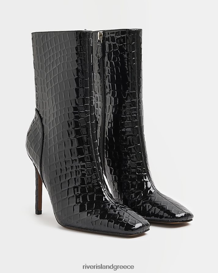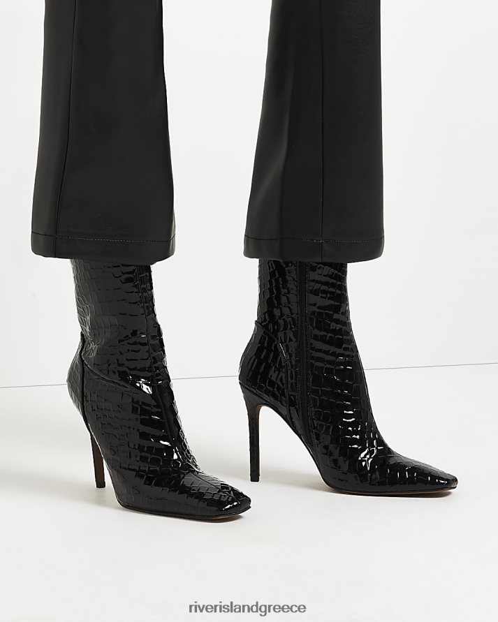 River Island είδη υπόδησης μαύρος γυναίκες μπότες με τακούνι με ανάγλυφο κροκό B6N8X4757
