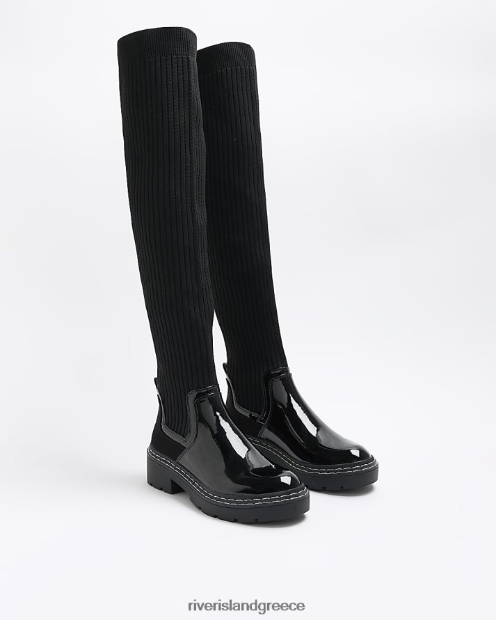 River Island είδη υπόδησης μαύρος γυναίκες πλεκτές μπότες με ψηλό πόδι B6N8X1073