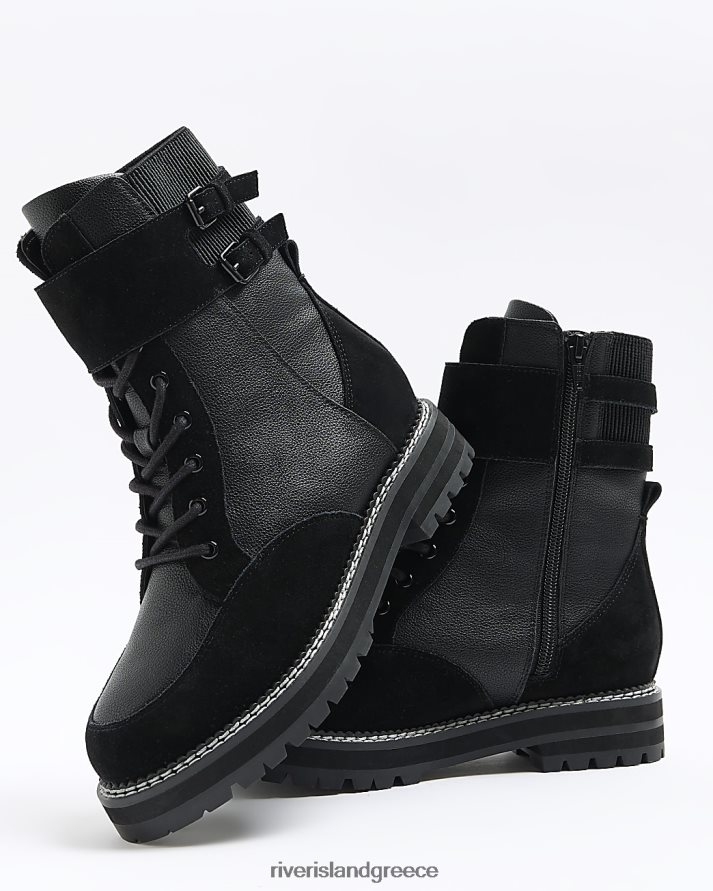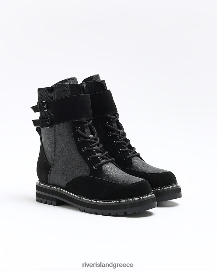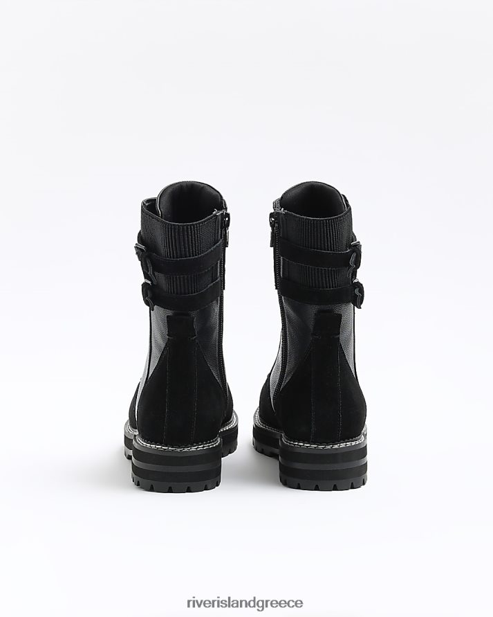 River Island είδη υπόδησης μαύρος γυναίκες σουέντ μποτάκια με κορδόνια B6N8X4241