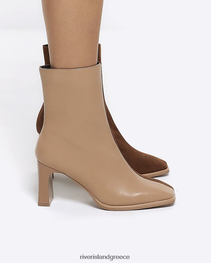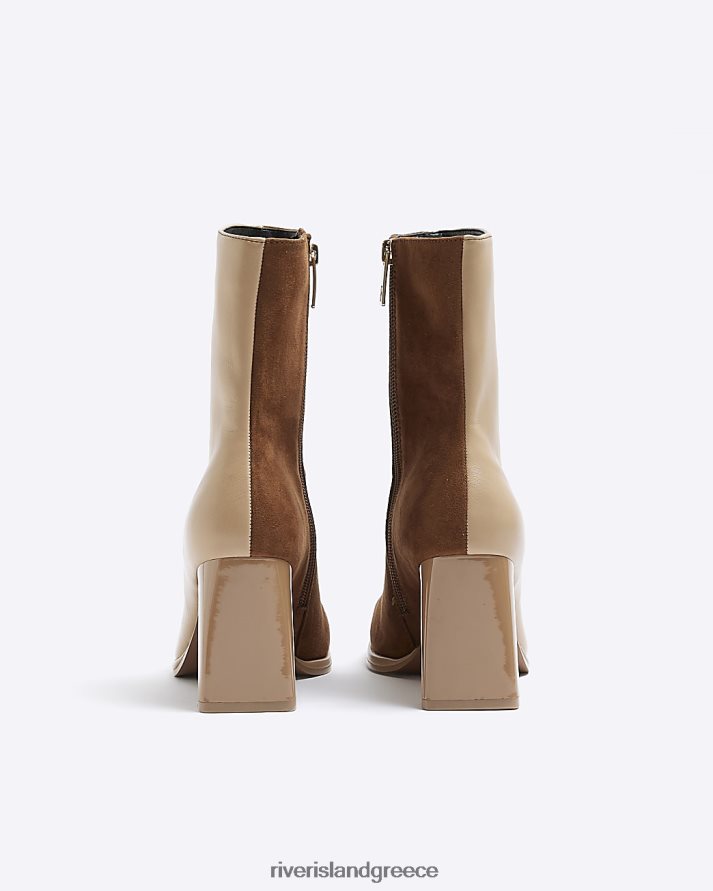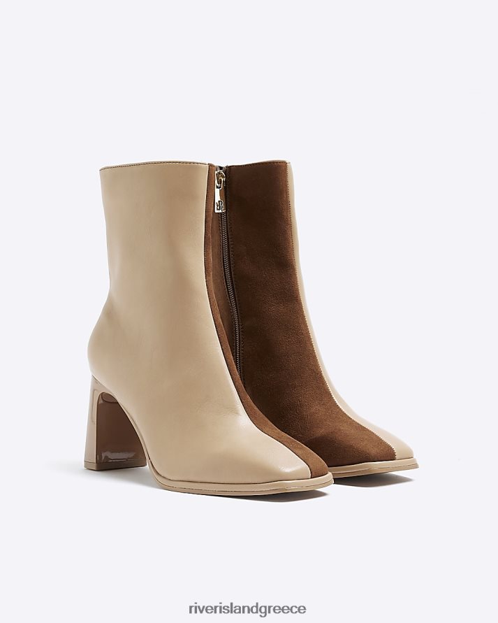 River Island είδη υπόδησης μπεζ γυναίκες μποτάκια δύο τόνων με τετράγωνο τακούνι B6N8X1111