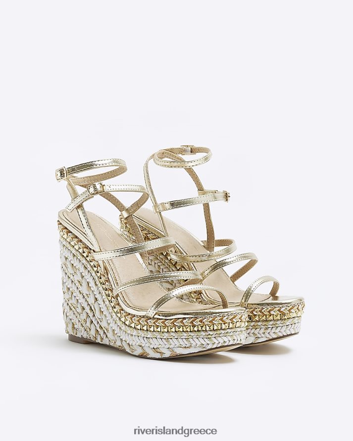 River Island είδη υπόδησης χρυσός γυναίκες σανδάλια με strappy wedge B6N8X4583