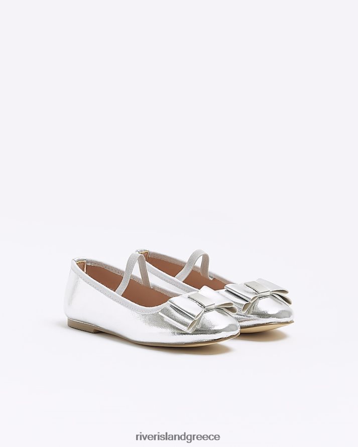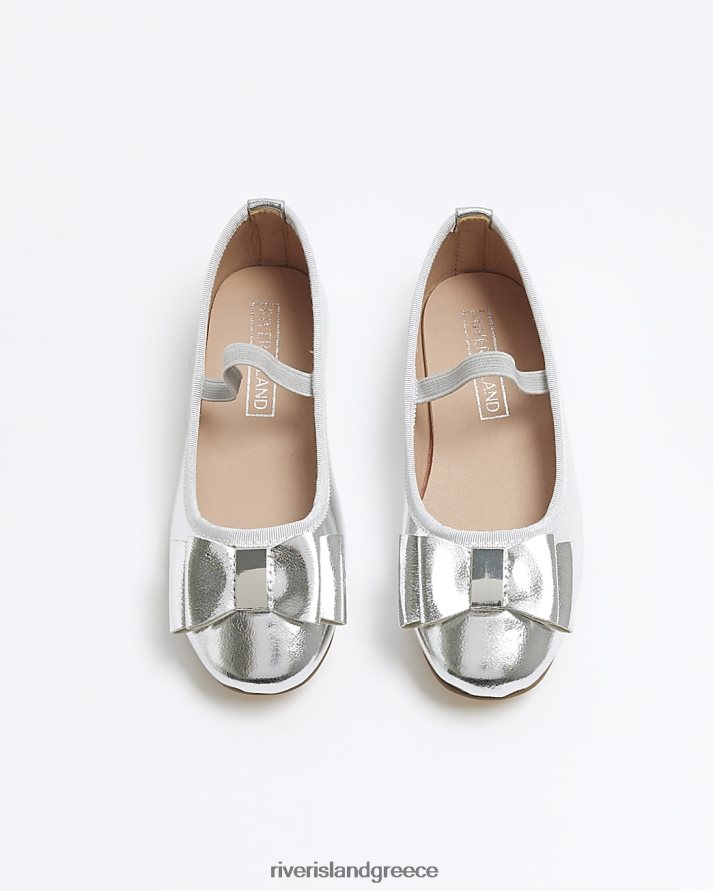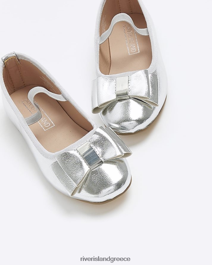 River Island είδη υπόδησης ασήμι κορίτσια g παπούτσια μπαλαρίνας φιόγκου B6N8X3195