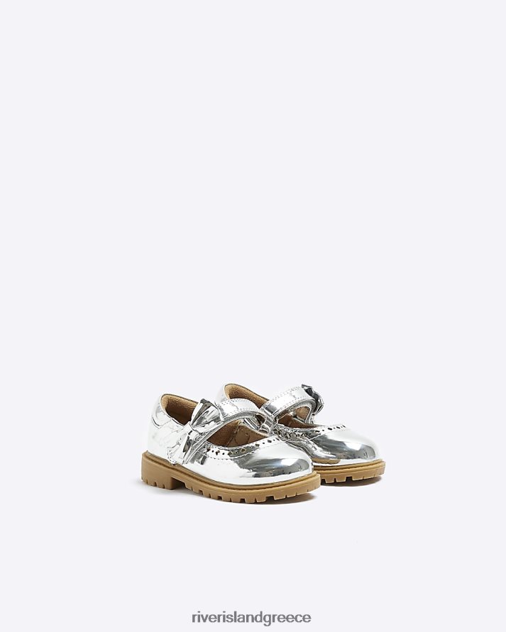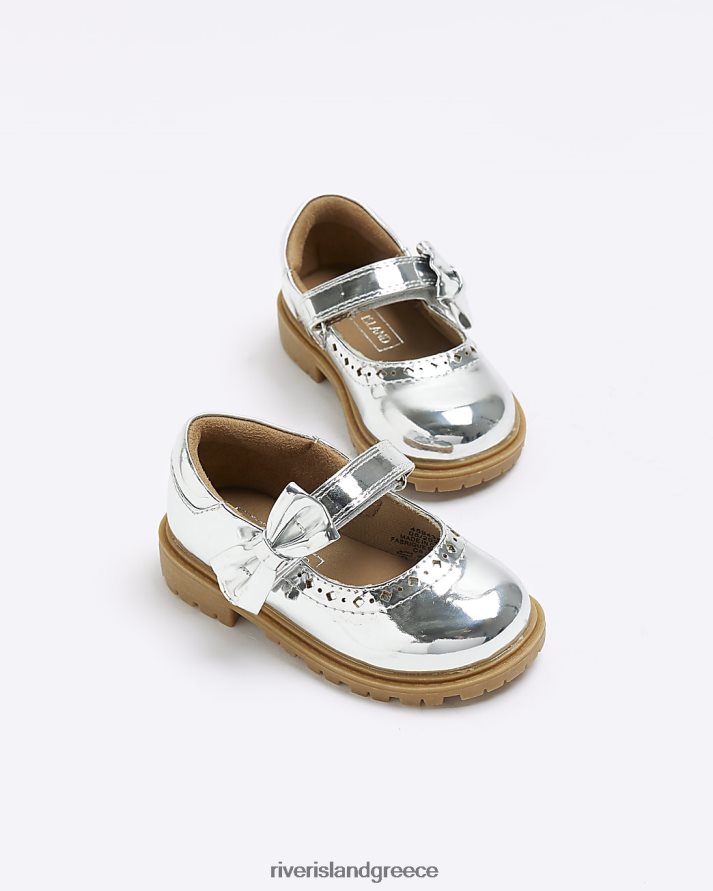 River Island είδη υπόδησης ασήμι κορίτσια mg φιόγκο παπούτσια mary jane B6N8X6658