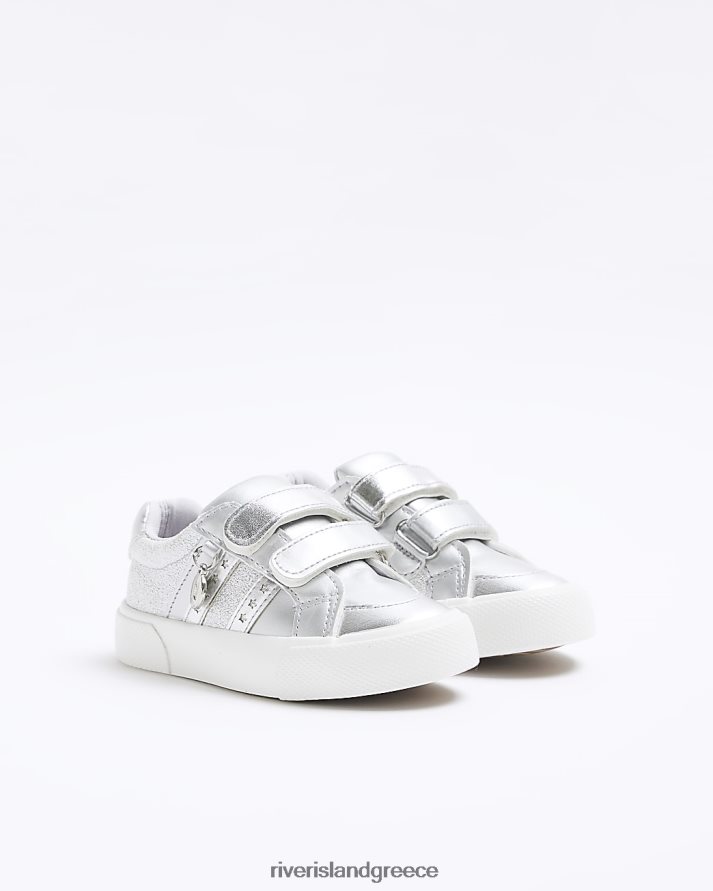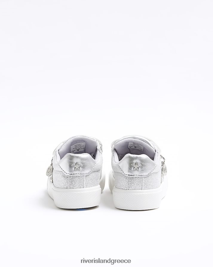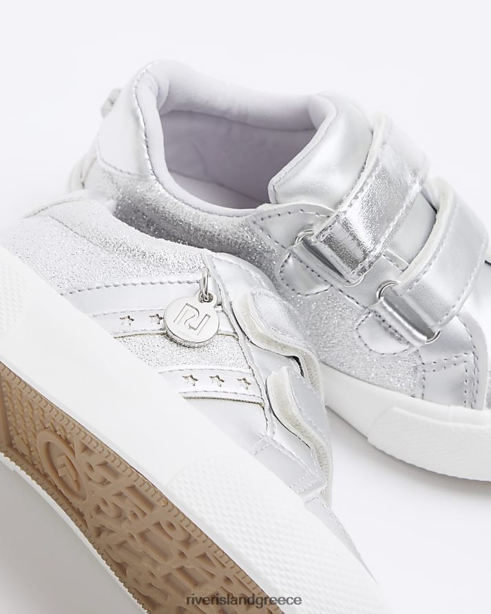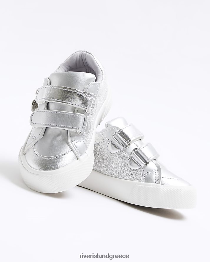 River Island είδη υπόδησης ασήμι κορίτσια mg glitter velcro trainers B6N8X6587