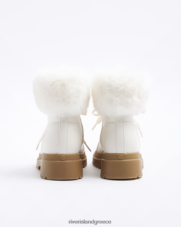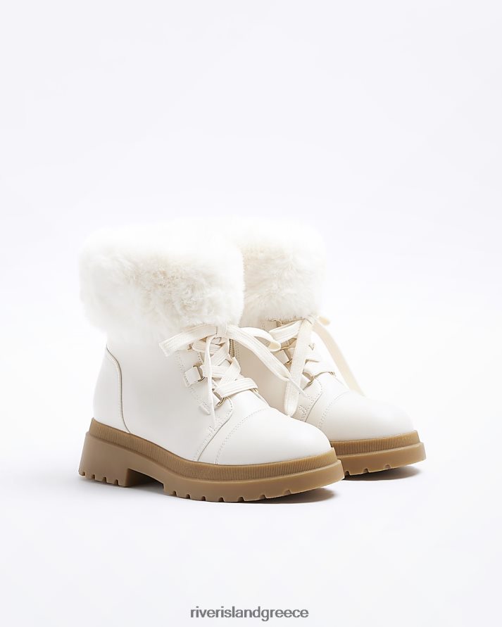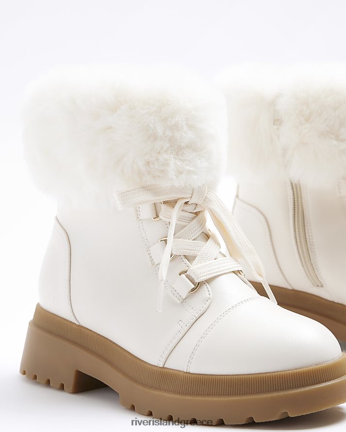 River Island είδη υπόδησης κρέμα κορίτσια g μπότες πεζοπορίας από ψεύτικη γούνα φαρδιά εφαρμογή B6N8X5993