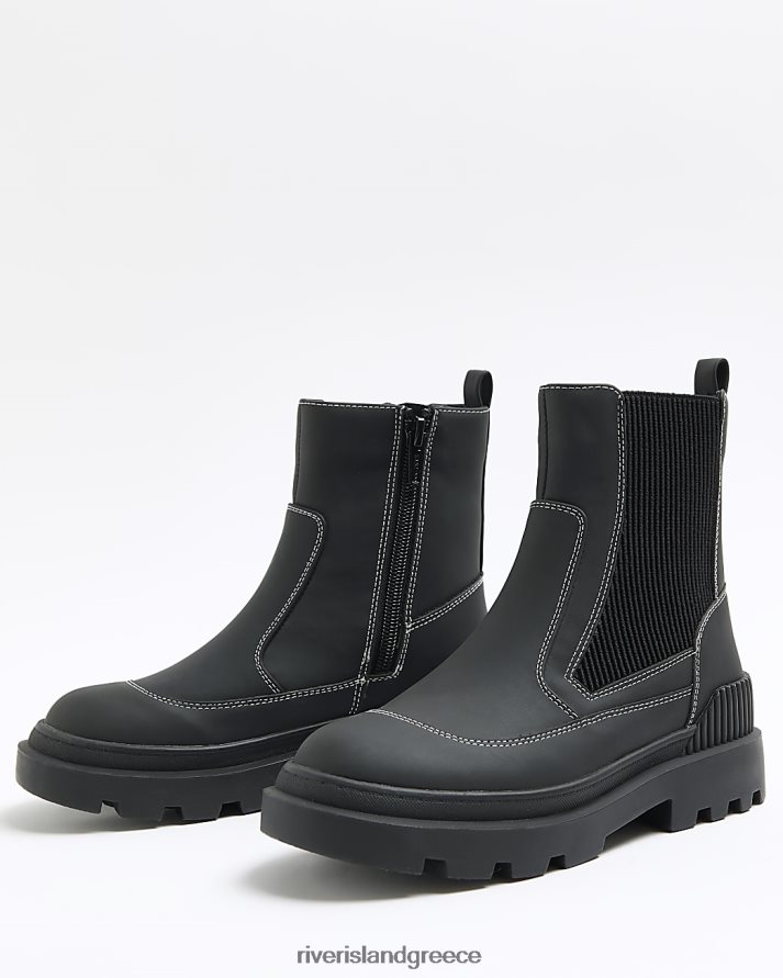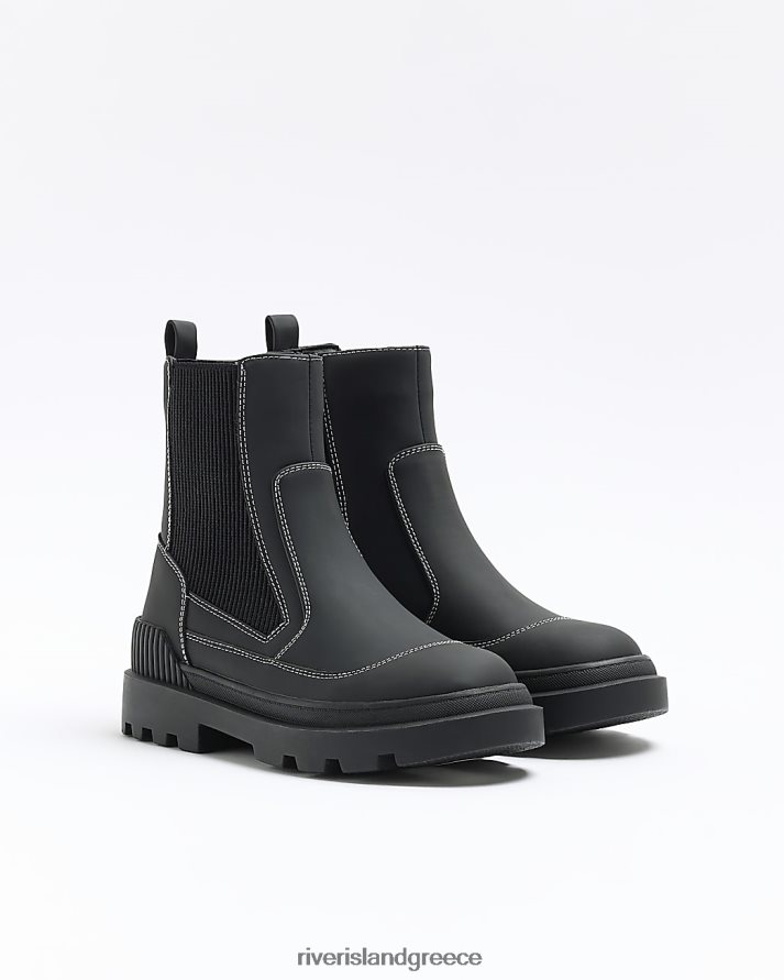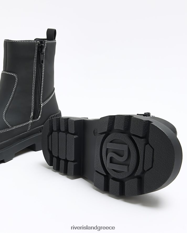 River Island είδη υπόδησης μαύρος κορίτσια g μπότες με λεπτομέρεια βελονιάς B6N8X6190