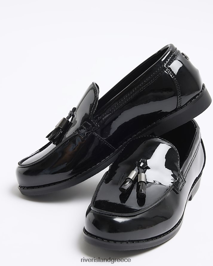 River Island είδη υπόδησης μαύρος αγόρια b patent φούντα loafers B6N8X6837